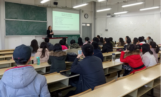 会上Cynthia A.Bansak 教授先介绍了其研究背景,表明目前全世界的难民人数呈增长趋势。据难民署报道,2015年全世界难民人数增至2130万,但是各国对接纳难民的抵制似乎有所增加。由于难民有可能犯下恐怖行为或从事犯罪行为,而这种可能性会引起民众的恐惧心理,使得社会变得不稳定,助长了特朗普政府的立场。研究假定难民会进入到劳动市场,且难民所在地是当地犯罪率的外部因素。研究利用美国各州难民的地理分布和时间分布的差异来确定美国难民所在地与当地犯罪率或恐怖主义事件之间是否存在联系。研究结果表明全世界的难民人数在增长,而各国对难民的接纳程度各不相同,此外难民对当地犯罪率没有显著影响。Cynthia A.Bansak教授绘声绘色的讲解其研究内容,耐心详细地解答老师和同学们提出的疑惑,在座的同学们一边认真听着讲解一边做笔记,气氛颇为活跃。
