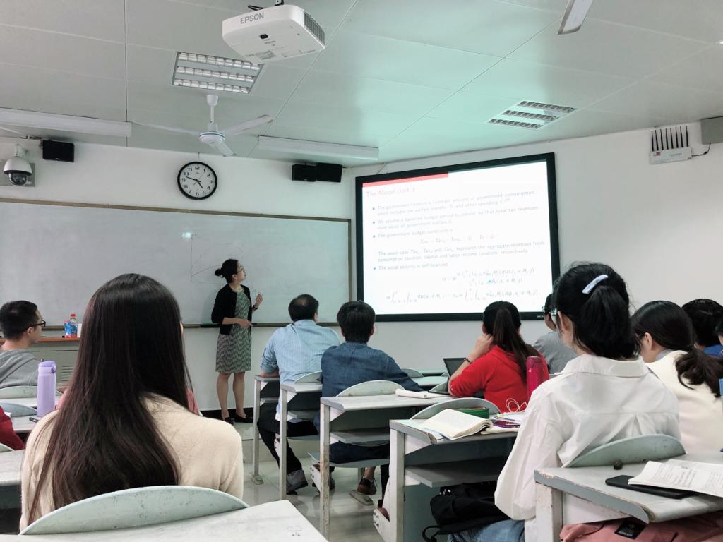 北校区水上教学楼211如期举行。此次研讨会的主题为“The welfare effects of consumption taxes and UBI”,主讲人为李倩教授。